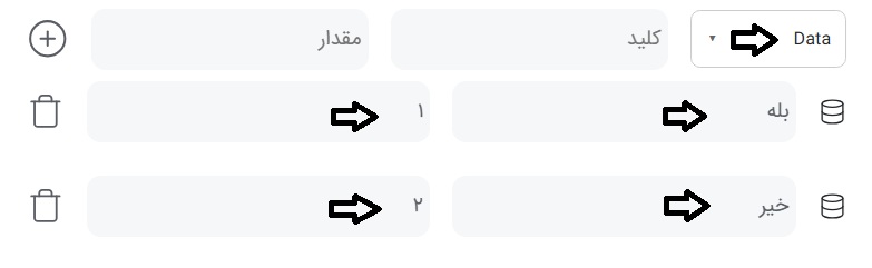نام کلید بعدی را «خیر» وارد کنید و مقدار آن را 2 بگذارید. سپس دکمه + بزنید که اضافه شود.